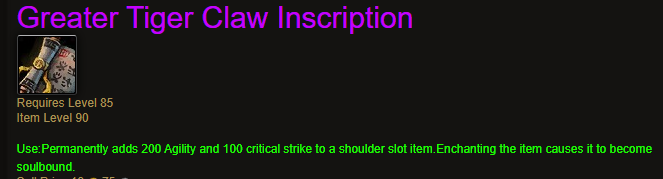 Greater Tiger Claw Inscription x1 <12 Hours $0.59 add to cart